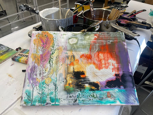Introduction: This class will give participants a thorough introduction to the encaustic medium and methods. Artists with experience in any artistic media will find this class interesting as well as inspiring. In this class, students will be able to combine found objects and collage materials into their work or create images directly with wax. Demonstration of technique will accompany each of the projects. Students are encouraged to bring found objects, photographs, paper and other interesting materials to the workshop to incorporate or imbed into their artwork. Class participants will leave with finished artworks and the knowledge of where to buy materials, how to make encaustic medium, suggested books to purchase, a list of artist’s websites who work with encaustic, and tips on how to set up your personal studio. Class size is limited so make sure and reserve your place in the class today. No prior experience is necessary. Class fee pays for the following and includes Use of classroom, heated pallets, available carving tools, use of propane torch and heat gun, paper towels, latex gloves, textures, items to embed, and waxed paper. Basically, all necessary tools will be provided. $50 Supply fee pays for the following 4 colored wax cakes, 2 encaustic medium cakes, 2 grounds (panels to encaustic on) *Additional grounds and wax will be available for purchase. Suggested supplies Apron, sketchbook/notebook, masking tape, any inspirational objects or images, photographs, fabrics, rusted objects, stamps and ink pads, any found objects such as buttons, bottle caps, string, elements from nature or anything else you may draw inspiration from. Not for children 16+ Only